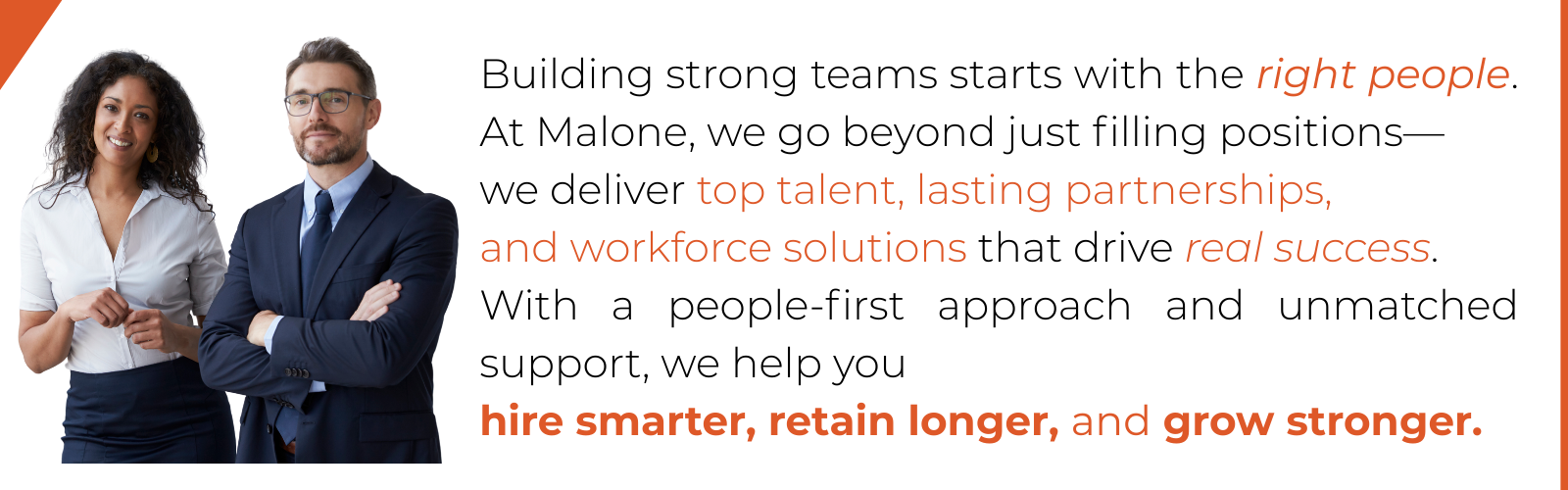 At Malone, we believe staffing works best when it’s built on understanding, trust, and accountability.